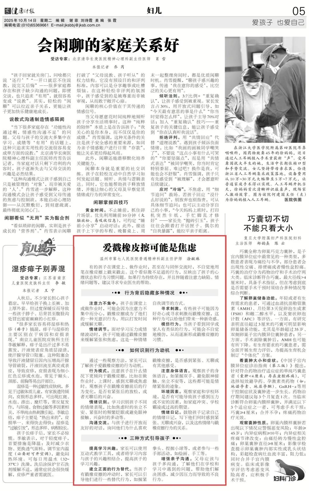 随着精神医学的发展和人们对儿童青少年生长发育、精神心理的重视,儿童青少年早期发育和行为障碍疾病受到越来越多的关注。因此,厕所偷拍