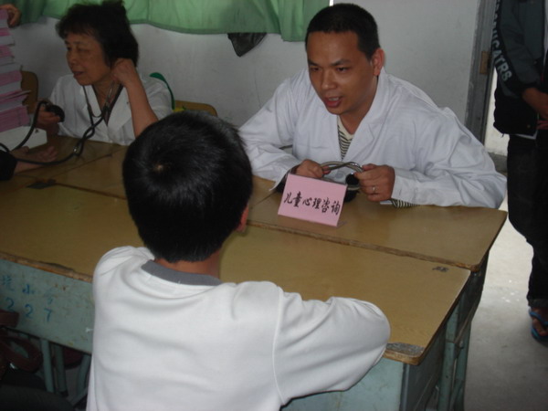 工作人员充分发挥自身优势,针对山区留守儿童多的特点,从学生的心理健康层面现场为学生们开展身体检查、心理咨询、心理测评,确保孩子们都拥有健康的身心。