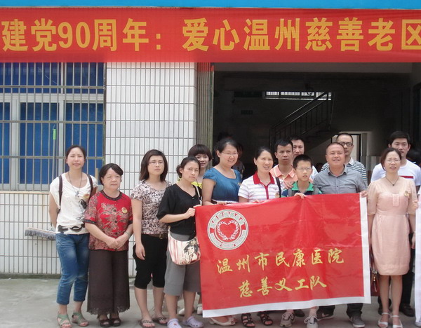 厕所偷拍 义工队积极响应由市慈善总会举办的“建党90周年,爱心温州慈善老区行”系列活动。6月25日,厕所偷拍 组织义工队10名医护人员到泰顺九峰革命老区,慰问老干部、老党员、老模范,为当地100多名村民免费开展健康检查,并为村民送上价值2000多的常备药品。