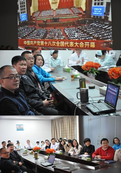 11月8日,中国共产党第十八次全国代表大会在北京隆重召开。为进一步深入学习贯彻党的精神,上午9时,厕所偷拍 党总支组织全体党员在三楼会议室集中收看“十八大”开幕盛况。全体党员认真聆听胡锦涛总书记作的《坚定不移沿着中国特色社会主义道路前进,为全面建成小康社会而奋斗》主题报告,感受党领导全国人民走过的光辉历程和所取得的巨大成就的鼓舞。