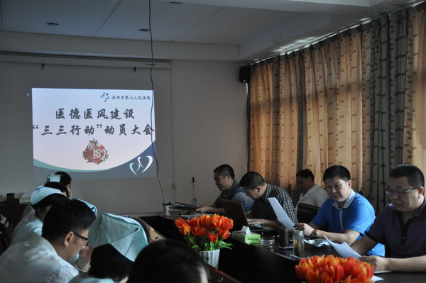 召开医德医风建设“三三行动”动员大会。会议由胡立荣院长主持,医院领导班子成员、中层干部参加了会议。