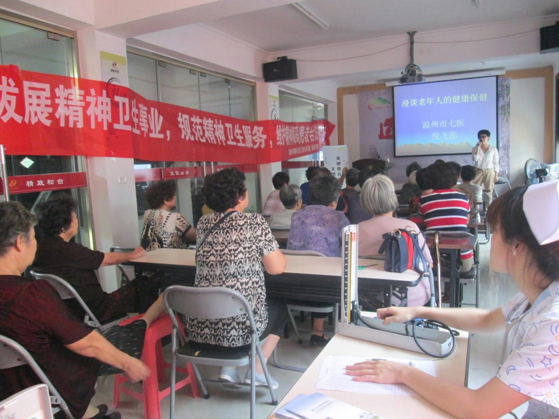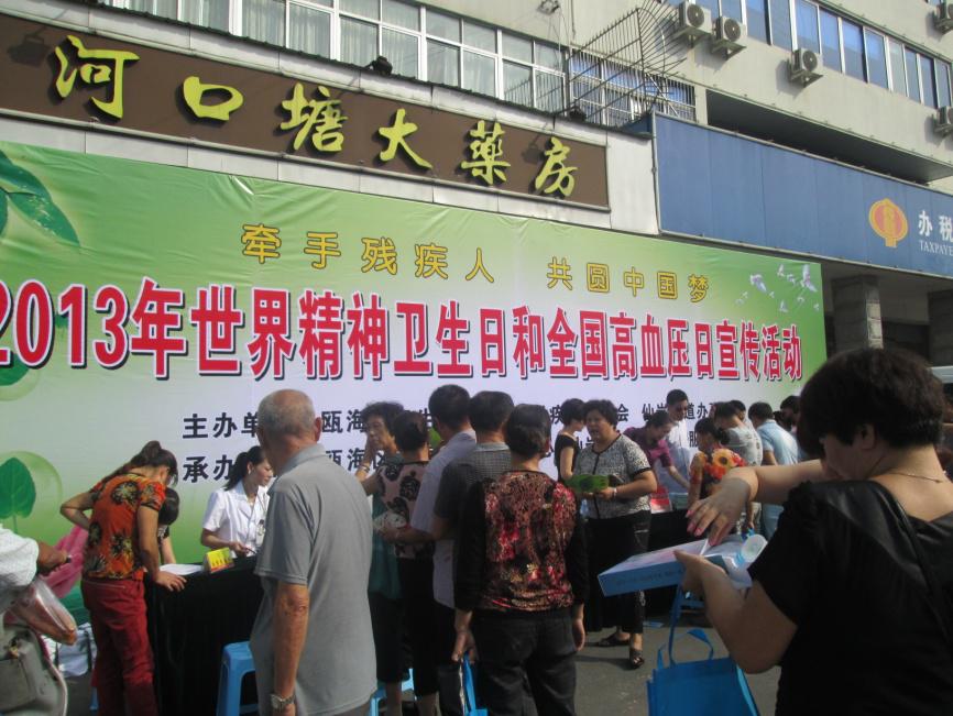 联合瓯海区卫生局、疾病预防控制中心及仙岩街道办在仙岩街道广场开展宣传活动,向社会大众宣传精神卫生法及精神卫生相关知识。
