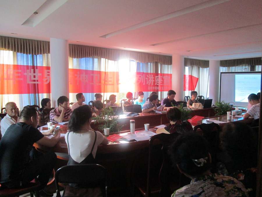 防治科联合瓯海区南白象街道开展《精神卫生法与精神障碍的社区识别》讲座, 社区民警、残联、民政干部、各村委代表、责任医师、精神疾病患者家属参加了此次活动。精卫办倪飞蕊医师从普及精神卫生法意义开场,引导群众关注心理健康,预防精神障碍的发生,同时指导社区精神障碍患者家庭康复,提倡共同维护好精神障碍患者的人格尊严和合法权益。