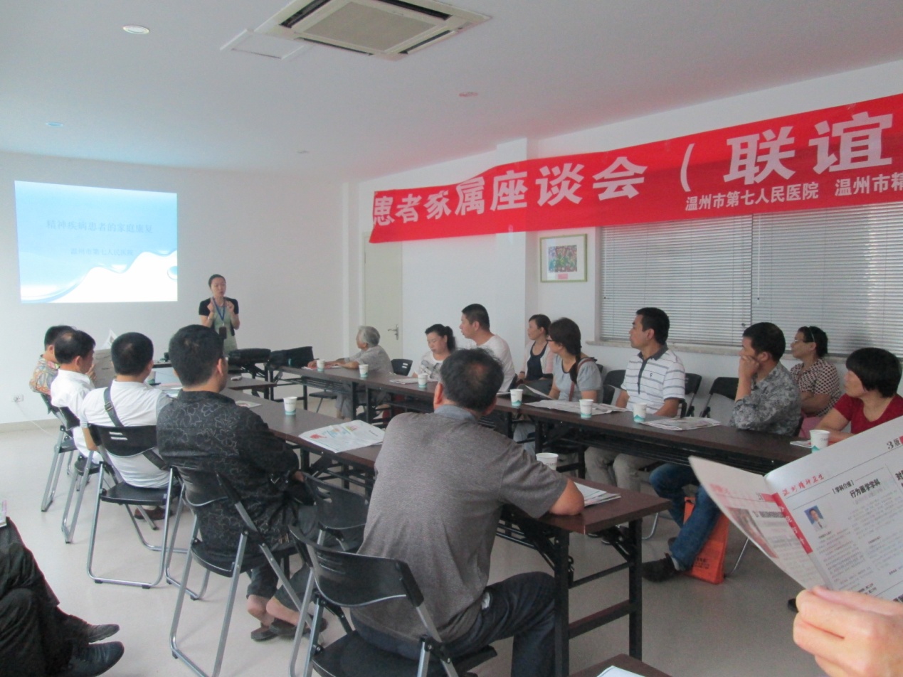 副主任护师张崇丽首先就精神卫生法中关于家属的责任和患者享有的权利进行了解释宣传。同时,结合家属需要就患者的家庭康复进行了深入浅出的讲解。她指出家庭康复是患者回归家庭和社会的重要环节。讲座内容中关于患者疾病复发征兆、与患者的沟通技巧和如何与患者共同制定康复计划等内容让患者家属受益匪浅。