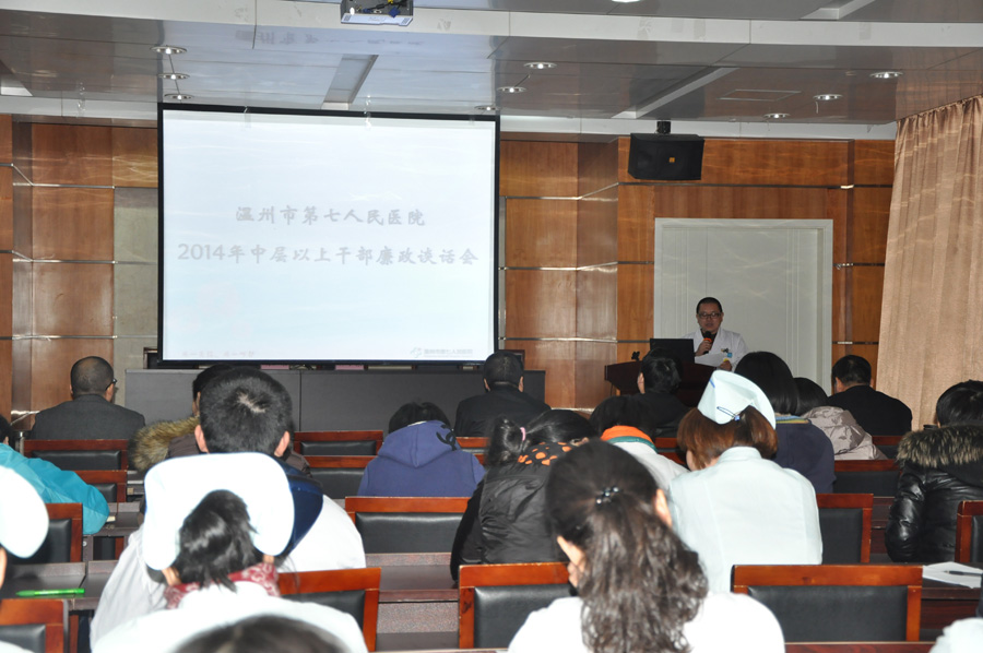 领导班子和各中层干部严格执行廉洁自律规定,树立节俭文明过节新风气;全面落实关心群众和安全生产工作,维护社会和谐。之后,杨文龙书记结合卫生工作特色,对2014年纪检监察工作进行部署,要求2014年进一步探索有卫生特色的廉政教育方式方法,健全权力运行监督和制约机制,加大监督检查力度和卫生行风建设力度。