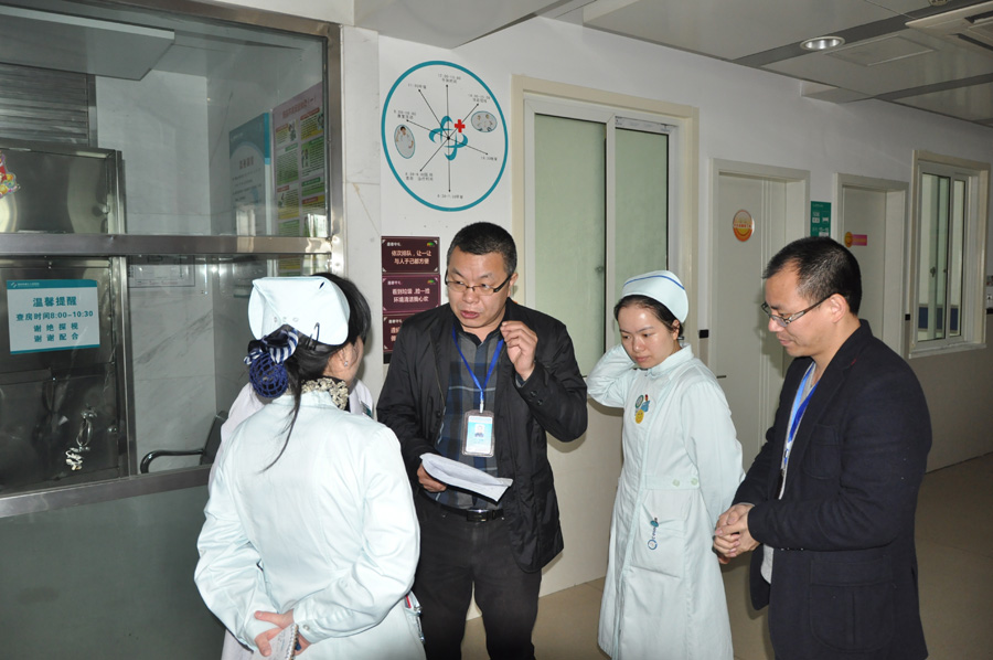 评审组到七病区(心身科)病区进行了现场考察和指导,并听取科室负责人对创建工作的汇报。最后,胡书记充分肯定了七病区青年员工的“敬业、协作、创优、奉献”的精神和为创建星级省级青年文明号所做的努力,同时也指出七病区创建工作中的不足之处,并提出了相应的改进建议。