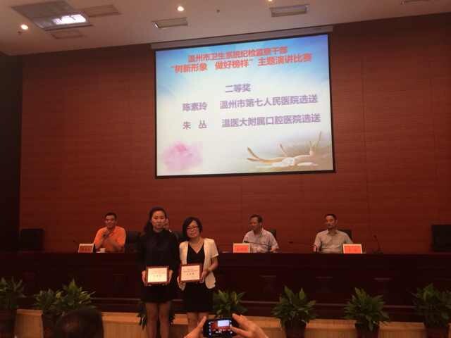 选手陈素玲喜获二等奖。市纪委常委市监察局副局长韩建海、市卫生局局长程锦国、驻局纪检组乡长杨文龙出席活动并为获奖选手颁奖。