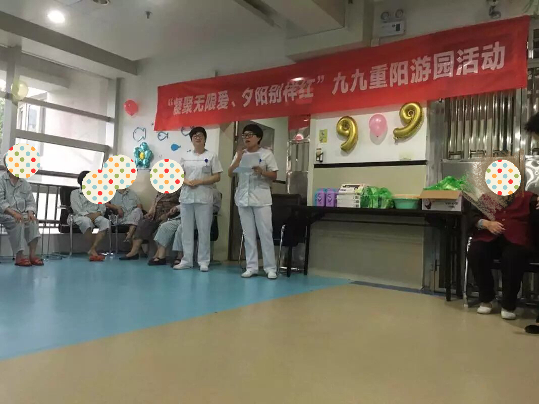 10月8日上午,在老年科(2)的病房中,10多名多年来未回过家的孤寡老人,早早的做好准备,迫不及待的想要参加科室组织的登山活动。登山活动由护士长黄海晓带队,10名老年患者由医护人员一对一照顾前往景山登高望远。在登山途中,老人们兴致高涨,大家有说有笑,气氛温馨而热烈,大家在尽情领略大自然风光的同时,也拉近了彼此间的距离。下午,医护人员准备了蛋糕、水果,为患者举行了丰富多彩的趣味活动,和老年病人们一起庆祝节日。同时,精心准备了饺子皮和饺子馅,组织患者包饺子,让患者从包饺子的过程中体验自足自给的乐趣,度过一个别样的重阳节。