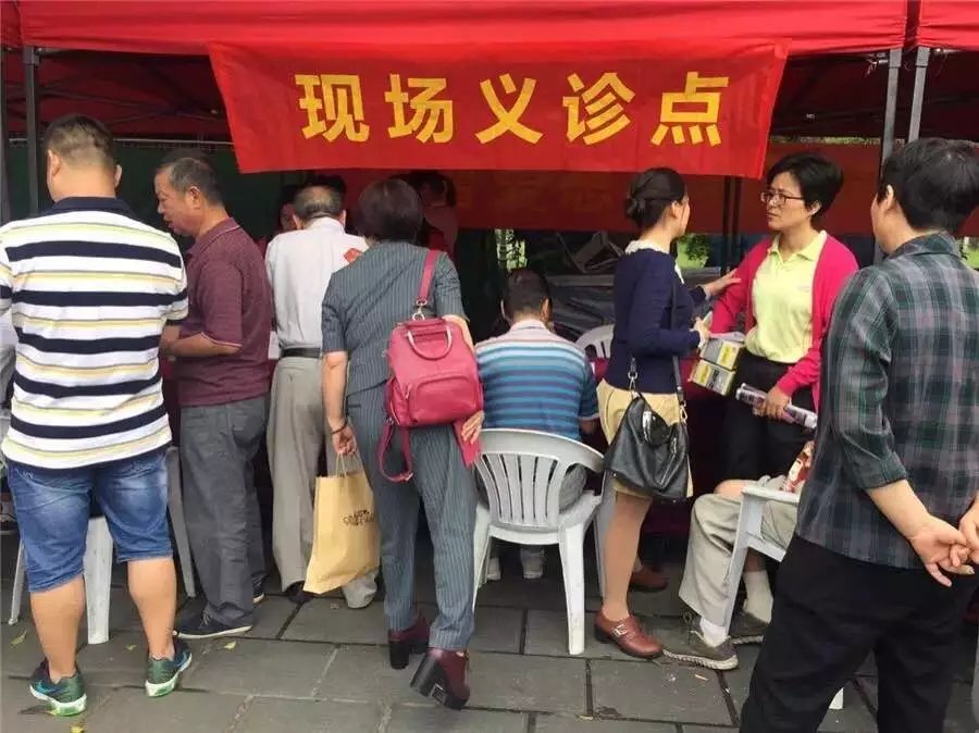 老年科土文珍主任(温州市阿尔茨海默病医疗专家团队成员)受邀参加此次现场义诊活动。 启动仪式现场,早已聚集了大量市民,热闹非凡。义诊活动现场,被市民们围得水泄不通,老年科土文珍主任细致入微地为市民们进行筛查、诊断,详细告知“安心手环”领取的流程,老年科护士陈艳为社区老人测量血压、血糖,提供生活指导。