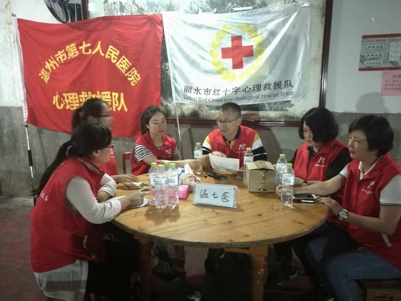 心理救援队7名成员在医务科科长陈策的带领下,历经3个半小时到达丽水市遂昌县。