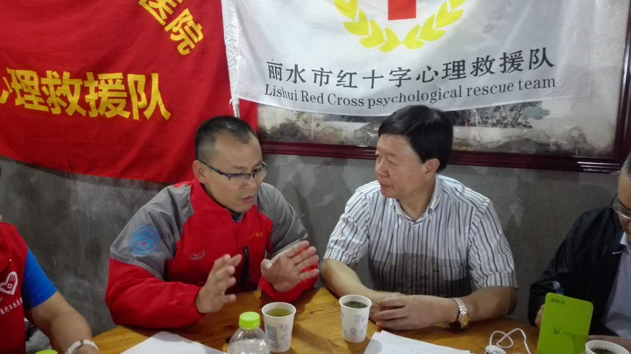 心理救援队成员与丽水市相关单位的心理救援工作人员进行工作交接。