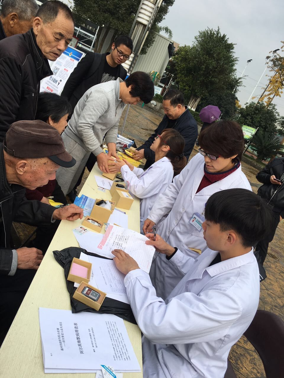 义诊队伍到达时,活动现场早早的聚满了等待的老人和家属。我们的医护人员各自分工,有序合作,为社区老人开展心理健康知识讲座,为他们测量血压、血糖,进行记忆筛查。对符合条件的老人,免费申领“安心手环”,为其老人及家属建立信息档案,并进行使用指导。义诊的一个上午,血压、血糖测量达100余人,现场筛查人数高达100人次,发放并登记安心手环18只。在“安心行动”的路上,我们又迈进了一大步。