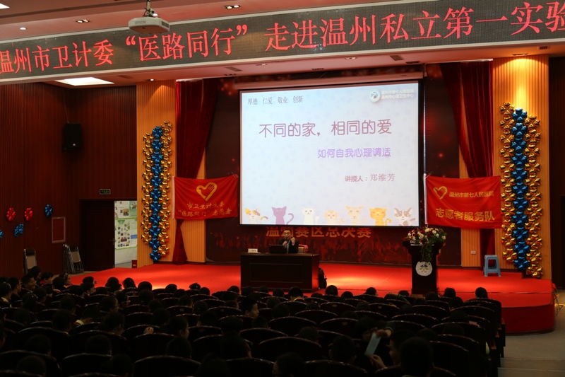 专场走进了温州私立第一实验学校。围绕“不同的家,相同的爱”这一主题,与该校六年级段近260名师生就“自我调适”问题进行了专题互动讲座。