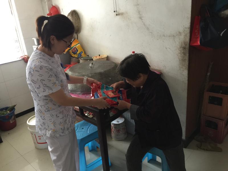 此次,慰问残疾贫困户共计42户,我们采取送慰问进村、入户,走进家门的形式,将一份份礼品与慰问金送到每一位位老人手中时。令人印象深刻的一位老奶奶,他家是早年间用泥土堆砌而成的简易土墙,家徒四壁。慰问中,小小的空间一下子拥挤了起来,嘘寒问暖之时,我们送去了中秋礼品与慰问金,老奶奶再也忍不住,双眼噙满了眼泪,说道:“我们在这小山村已经度过了80个年头了,如今儿女虽已长大,但为着生计必须在外面奋斗,独剩我们这些老人,幸好还有你们这些热心肠的医护人员记挂着我们,太感谢了,太感谢了,太感谢了”。