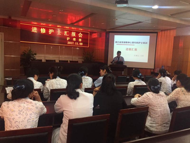 首先,专科护士王芳、陈曼通过精美的PPT课件作学习情况汇报。通过1个月的专科理论学习和3个月的临床专科实践,两人在各自导师的全力指导下专科科研意识,科研能力得到了很大的提升;对精神科护理、心理护理的新进展有了更深层次的认识;还学到了放松技术、焦点解决技术、合理情绪治疗技术。他们分别总结了进修医院的护理亮点、创新点,并就厕所偷拍 的现状提出了各自的看法和建议。随后,厕所偷拍 首位参加MECT专科护士培训的李灿灿主管护师也交流了本次培训的心得体会,她给大家分享了最前沿的MECT治疗护理相关信息。