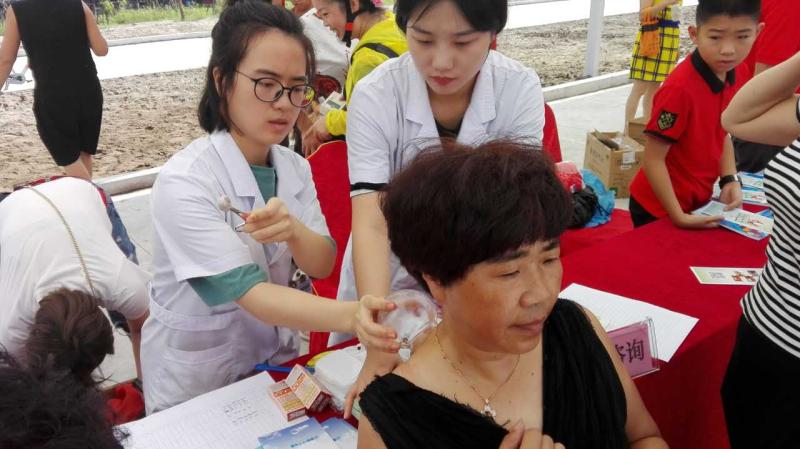 此次义诊服务群众30多人次,为5名群众提供心理疏导服务,为20余名患者提供拔罐艾灸服务。