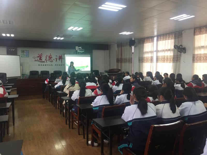 在文成县百丈漈镇中心小学,防治科心理咨询师林晓曙为在校初一、初二女同学带来了一场有关“迎接青春期”讲座。讲座上,咨询师用生动的讲课为同学们讲解青春期的相关知识,让她们更科学、理性地看待自己在青春期中的一些变化。现场,咨询师一一解答了同学们的问题,并耐心地和大家讨论了“早恋”、“生理期知识”等青春期话题。