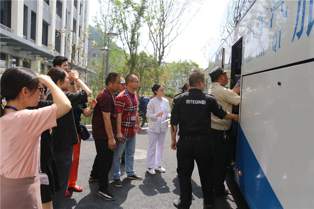 5月17日上午,两辆旅游巴士驶进潘桥新院住院部楼下,医护人员、保卫人员、行政人员准备就绪,只为病人安全搬迁转移保驾护航。