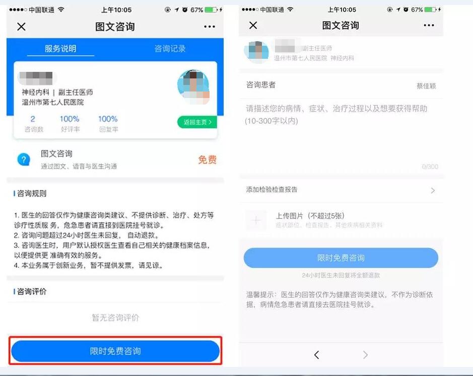 3、线上咨询是创新业务,费用需要全部自费,暂不提供发票和医保报销。