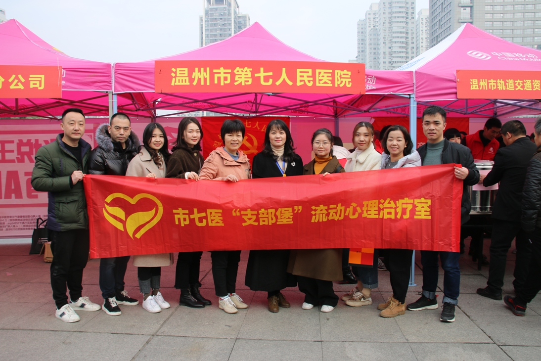“支部堡”流动心理治疗室“搬”进了温州市火车站广场。伴随着身着红色马甲的市七医党员志愿者们为归乡的人们送上的一份份关爱,已坚守13年的“春运送关爱行动”正式拉开活动序幕。