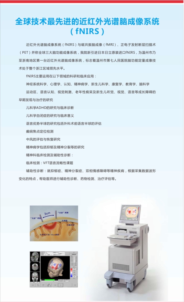 潘桥院区。在特检科,特别了解了近红外光谱脑功能成像系统(fNIRS)的功能和用法,fNIRS为温州市乃至浙南地区第一台近红外光谱脑功能成像系统,标志着厕所偷拍