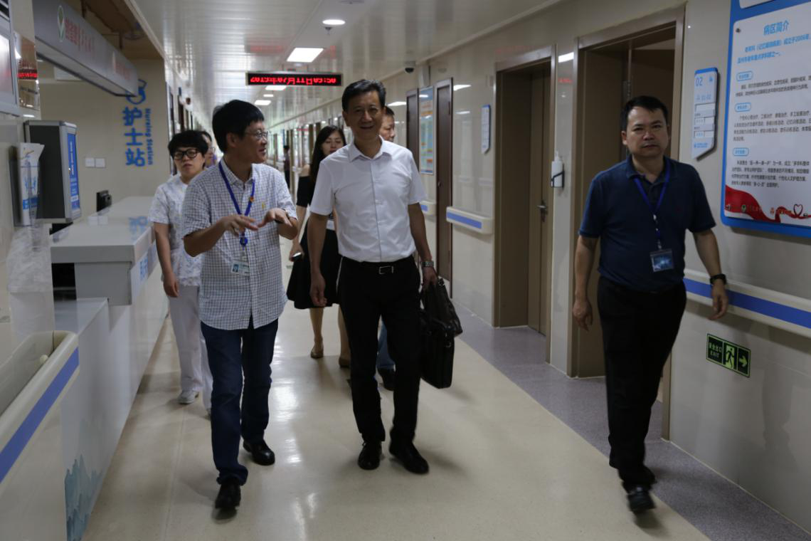 潘建国书记一行人在院领导的陪同下先后走访了放射科、特检科、康复科及老年医学科等,实地考察了医院环境、硬件设施和患者就医情况,了解医院日常工作的开展情况。随后,在四楼会议室召开了专题座谈会。