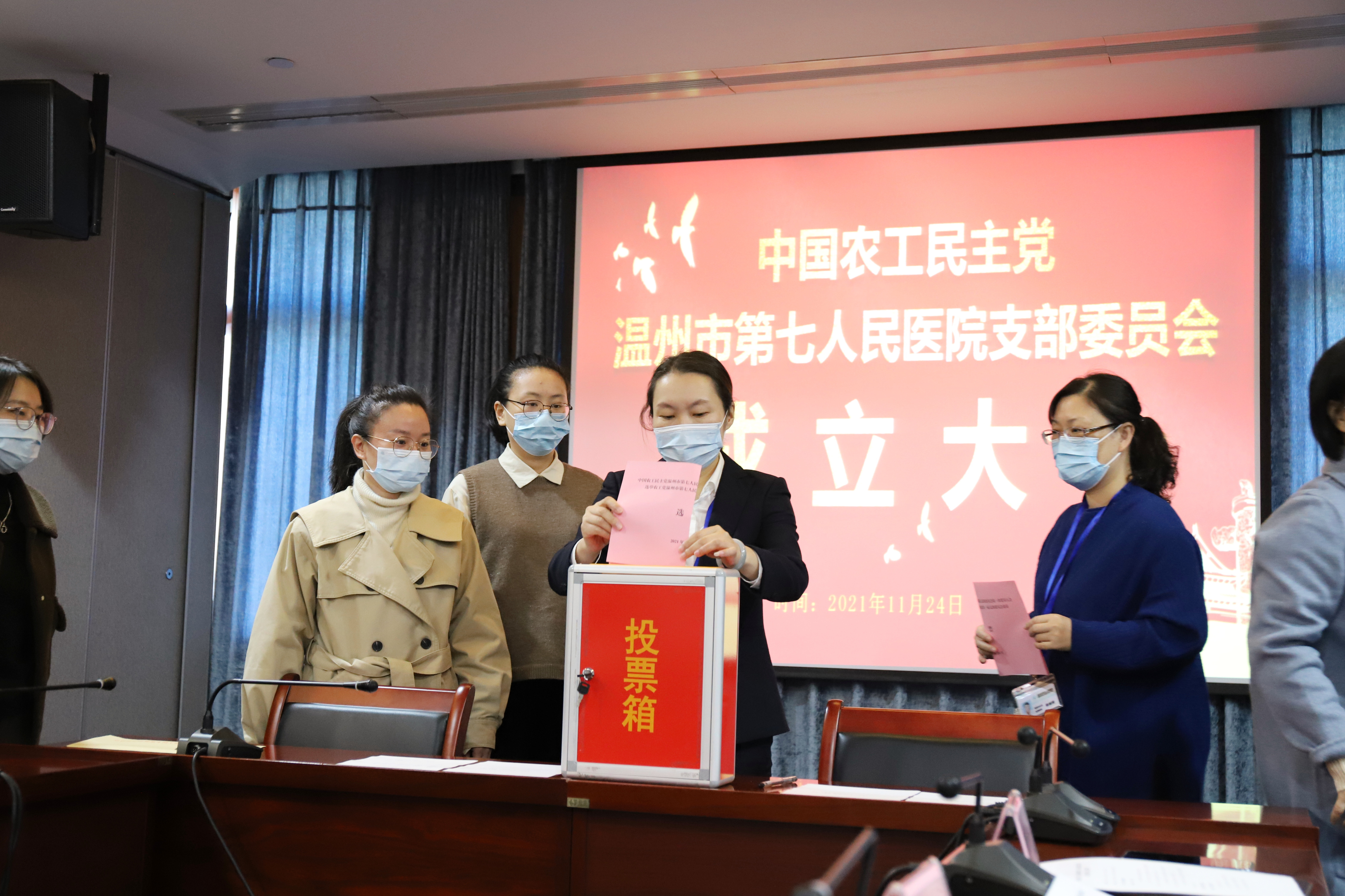 陈伟峰副主委代表农工党市委会向农工党七医支部委员会的成立表示热烈祝贺,感谢温七医党委对农工党温七医的成立给予的支持,在会上向各位新晋党员介绍了农工党的历史,并结合温州农工党各支部的历史事迹向我们展示农工党的精神,并对农工党温七医支部及全体农工党党员提出四点希望:一是抓好政治理论学习,强化思想引领;二是抓好组织队伍建设,为组织履职做好保障;三是坚持“两个围绕”:围绕中共第七人民医院党委及农工党市委会的中心思想进行工作,履行党派职能,发挥好参政议政、民主监督、政治协商等职能;四是立足本职岗位,自我加压,争取双岗建功。会议的最后,陈伟峰副主委指出,希望农工党温七医支部在温七医党委会及农工党市委会的领导下,坚定理想信念,锚定使命任务,砥砺奋进,为温七医的进一步发展,为温州奋力打造“重要窗口”和共同富裕示范区市域样本贡献自己的一份力量。