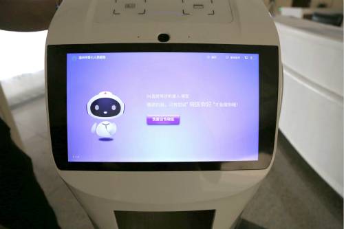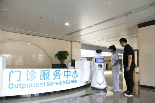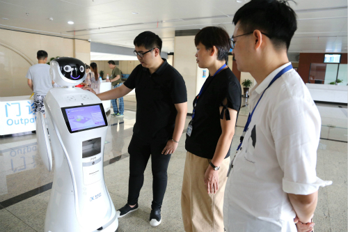 潘桥院区门诊大厅有位“大白”导医,全市首个智能机器人“晓医”上线