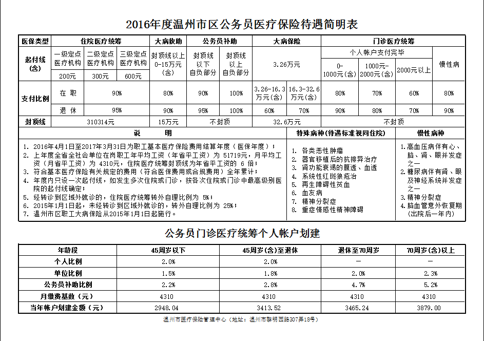 2016年度温州市区公务员医疗保险待遇简明表